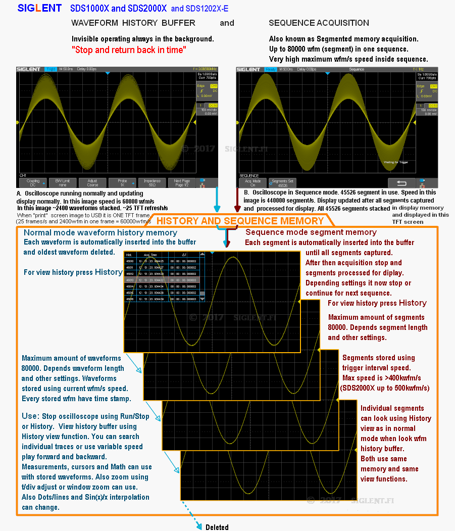 SDS1000X/X+ wfm/s - segment/s - wfm ja segment bufferi