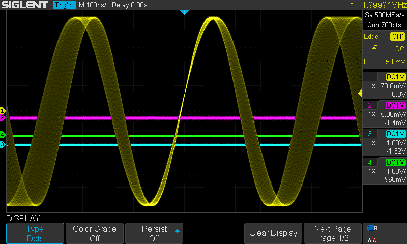 näyttömuotona on pisteet ja kaikenlisäksi vaikka Siglent todellakin näyttää vain