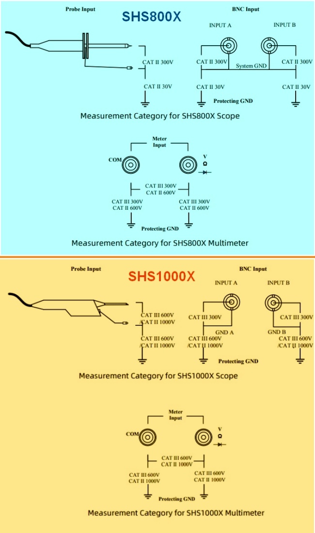 Samoin SHS1000X yleismittari on erikseen kelluva (CATII 1000V ja CATIII